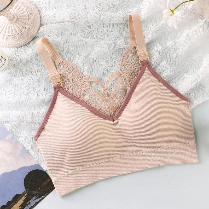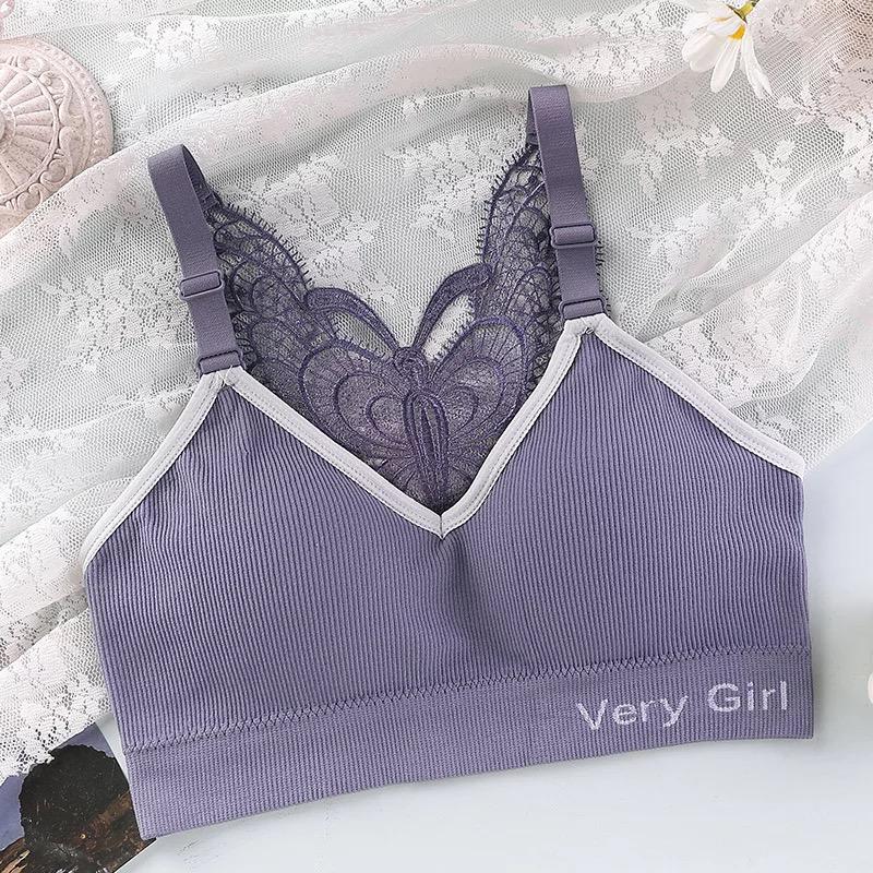 Butterfly beauty back floral plus size bra wrap chest tube top bralette brassier push up embroidery women seamless bra with lace