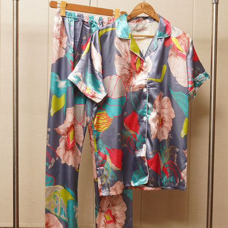 Flower Print Multicolor Satin PJ Set (WF-005)